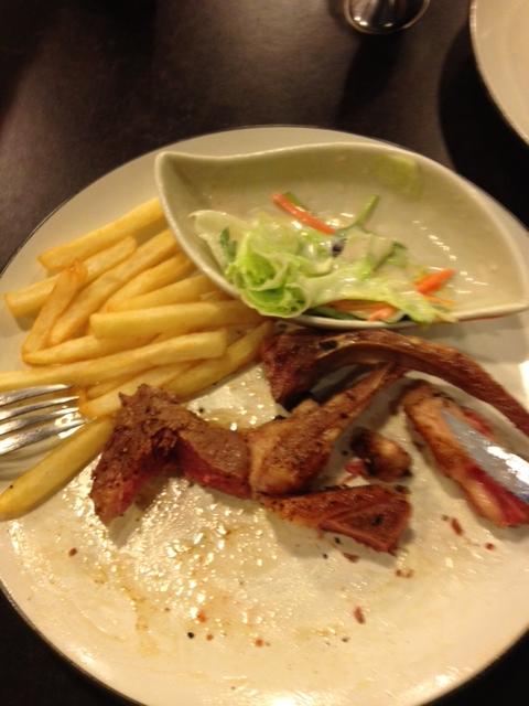Saturday Dinner Posted on May 21, 2012 by sone Went for roast lamb at Mastro’s meat market. Accompanied by a salad and some fries. Hubs got me a bottle of organic pomegranate juice. Very so-so. Not sure we’ll go back. Share this: Share on X (Opens in new window) X Share on Facebook (Opens in new window) Facebook Like Loading... Related