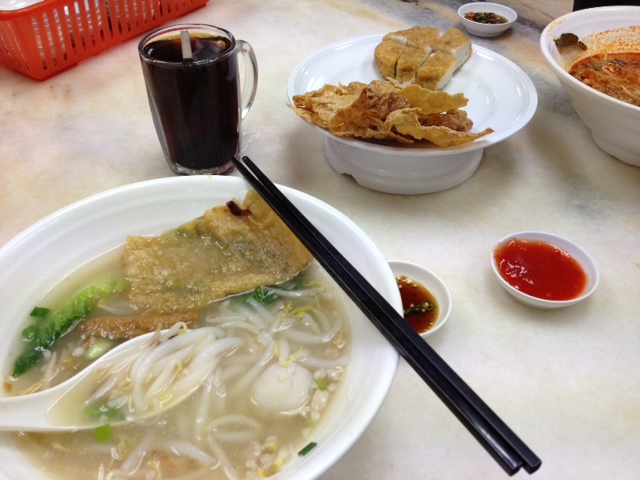 Thursday Lunch Posted on July 14, 2012 by sone Yay we went to AK in Pudu. Had my loh shee fun soup w lots of tau geh and fish balls. Shared a baked fish cake and tofu skin with AC. To drink, a hot longan tea. Finished all the soup was so hungry… (AC had curry soup). Share this: Share on X (Opens in new window) X Share on Facebook (Opens in new window) Facebook Like Loading... Related