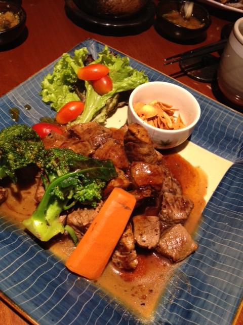 The restaurant had a special holiday set menu with a variety of items prepared by the chef. Decided to go for it and had no regrets. A tempura dish to start – fish and some vegetables and mushrooms, very nicely done. Then a platter of sushi, seaweed and grilled chicken and fish accompanied by rice and soup. We also had the house ocha.