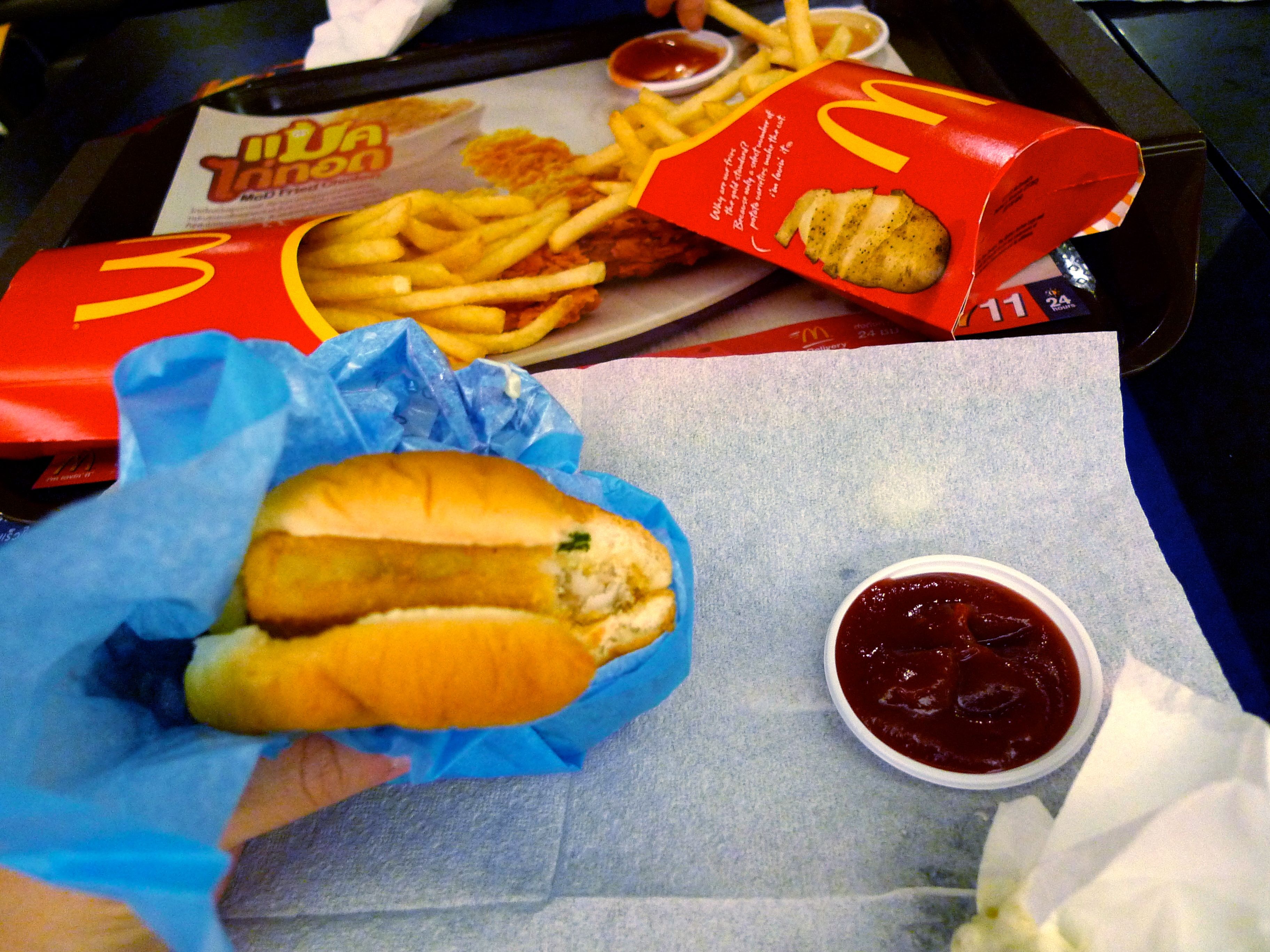 We arrived in Bangkok and with the change of time zones, our gastric juices also changed timezone and we were all over the place. By the time we hunted food down, it was midnight and the only place that was bright, looked clean and cheerful was… MacDonalds.