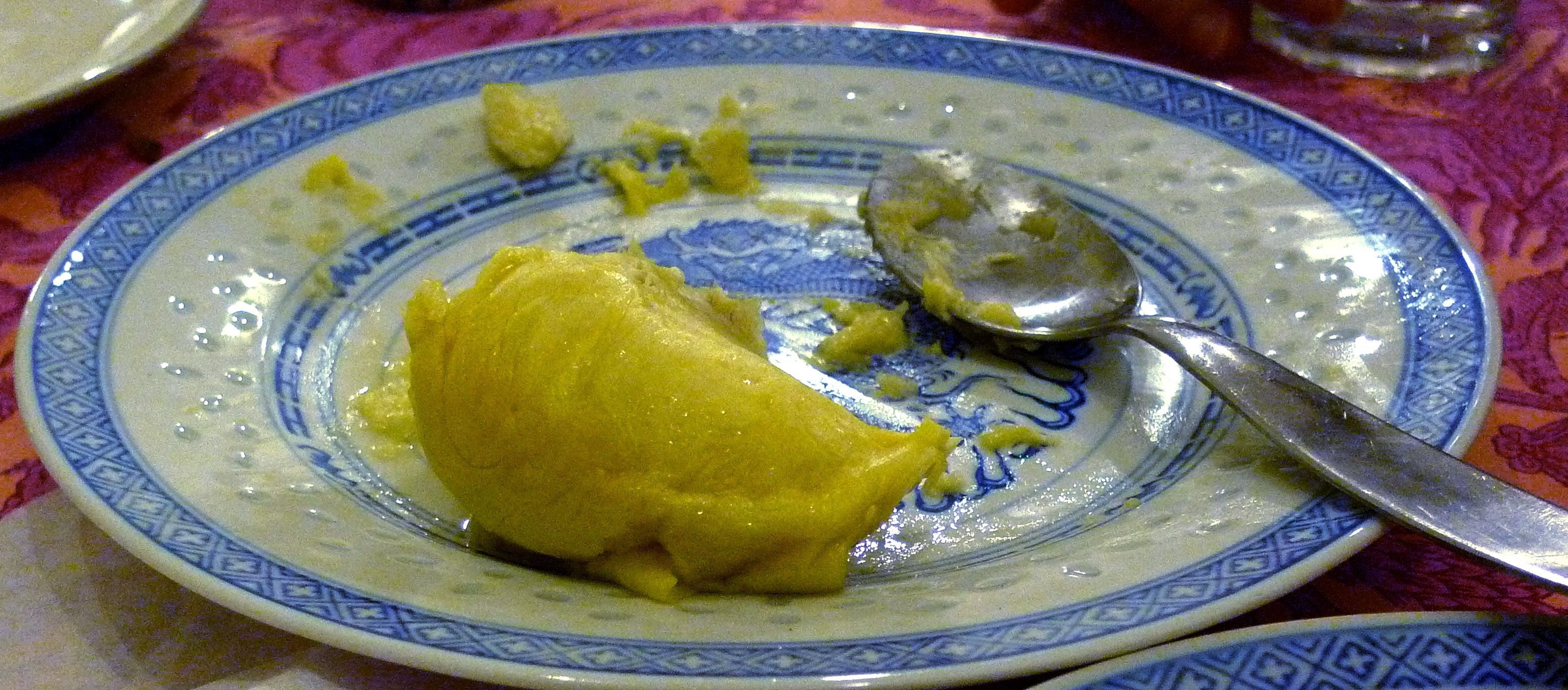 I ate half a Durian puff, 1 fork of Durian Mousse Cake, 1 slice of Durian crepe, 1 croissant.