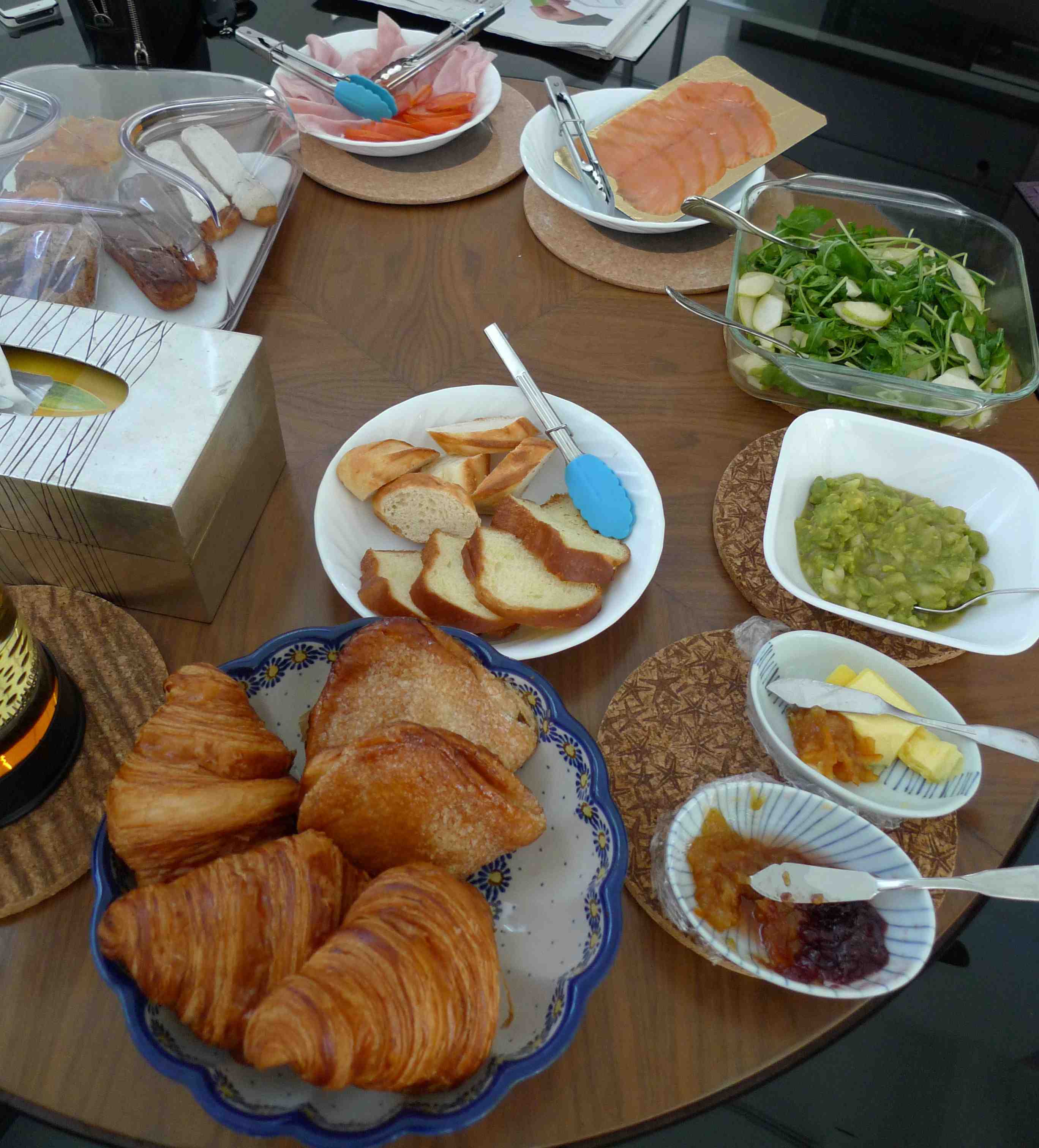 Then I rushed back for tea because someone was visiting my mum… I bought some croissants (4 normal butter, 2 chocolate) and 2 quiche lorraines from the Marriott cafe. But our friends brought some really fancy stuff over too…